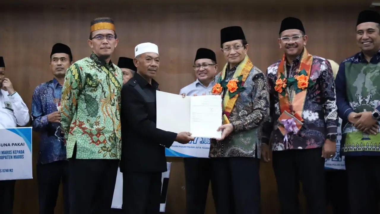 Hadir pula dalam kesempatan tersebut Wakil Bupati Muetazim Mansyur, Kepala ATR/BPN Maros Murad Abdullah, Ketua BWI Maros Said Patombongi, Direktur Pemberdayaan Zakat dan Wakaf Waryono Abdul Ghafur dan Kakanwil Kemenag Sulsel Ali Yafid.