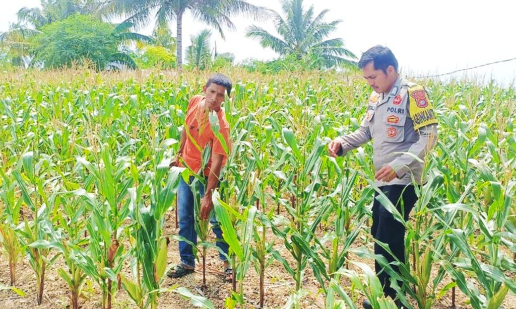 Dalam kegiatan tersebut, Brigpol Afrizal S menyambangi lahan pertanian warga guna memastikan pertumbuhan tanaman jagung berjalan optimal. Ia juga berdialog langsung dengan para petani untuk mengetahui kendala yang dihadapi, mulai dari kondisi cuaca hingga perawatan tanaman.